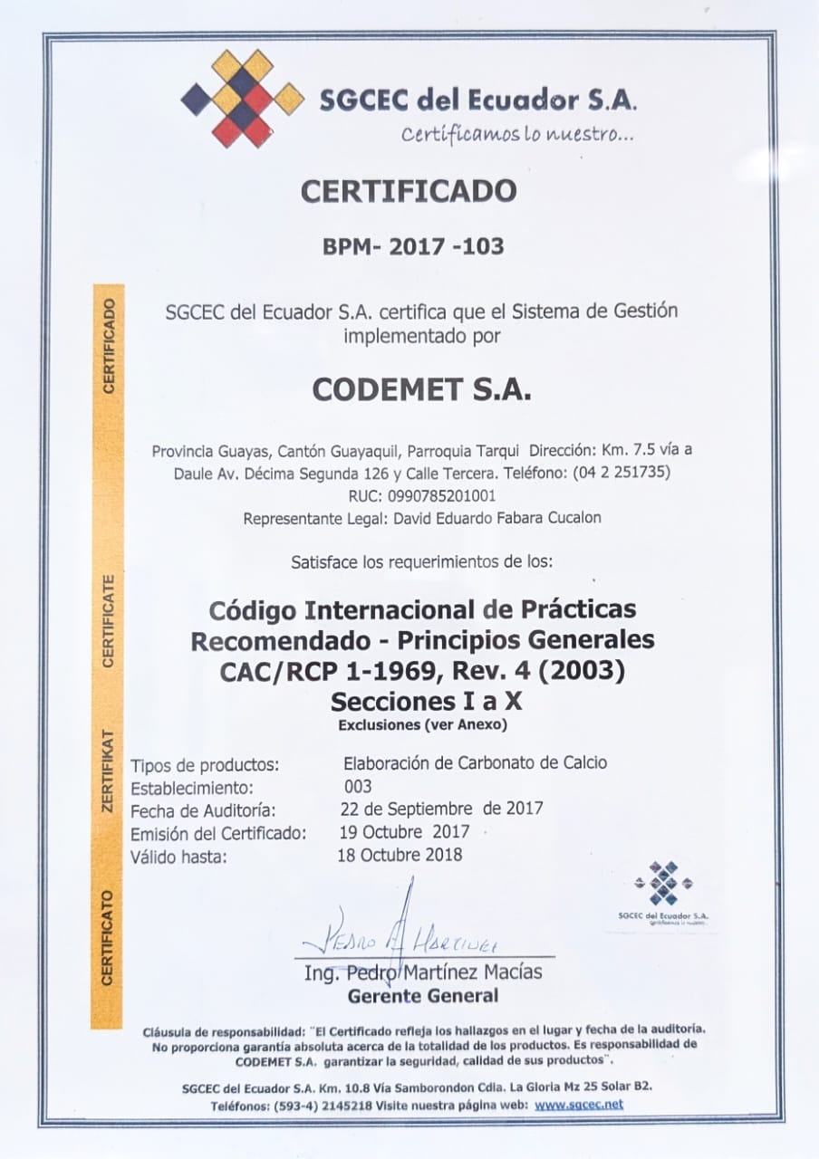 Producción de Carbonato de calcio y otros minerales para industrias. Mantenimiento en áreas como mecánico, electrónico, trabajo en metales, optimización de KPIs y eficiencia.Otra demostración de que CODEMET domina la ingeniería.