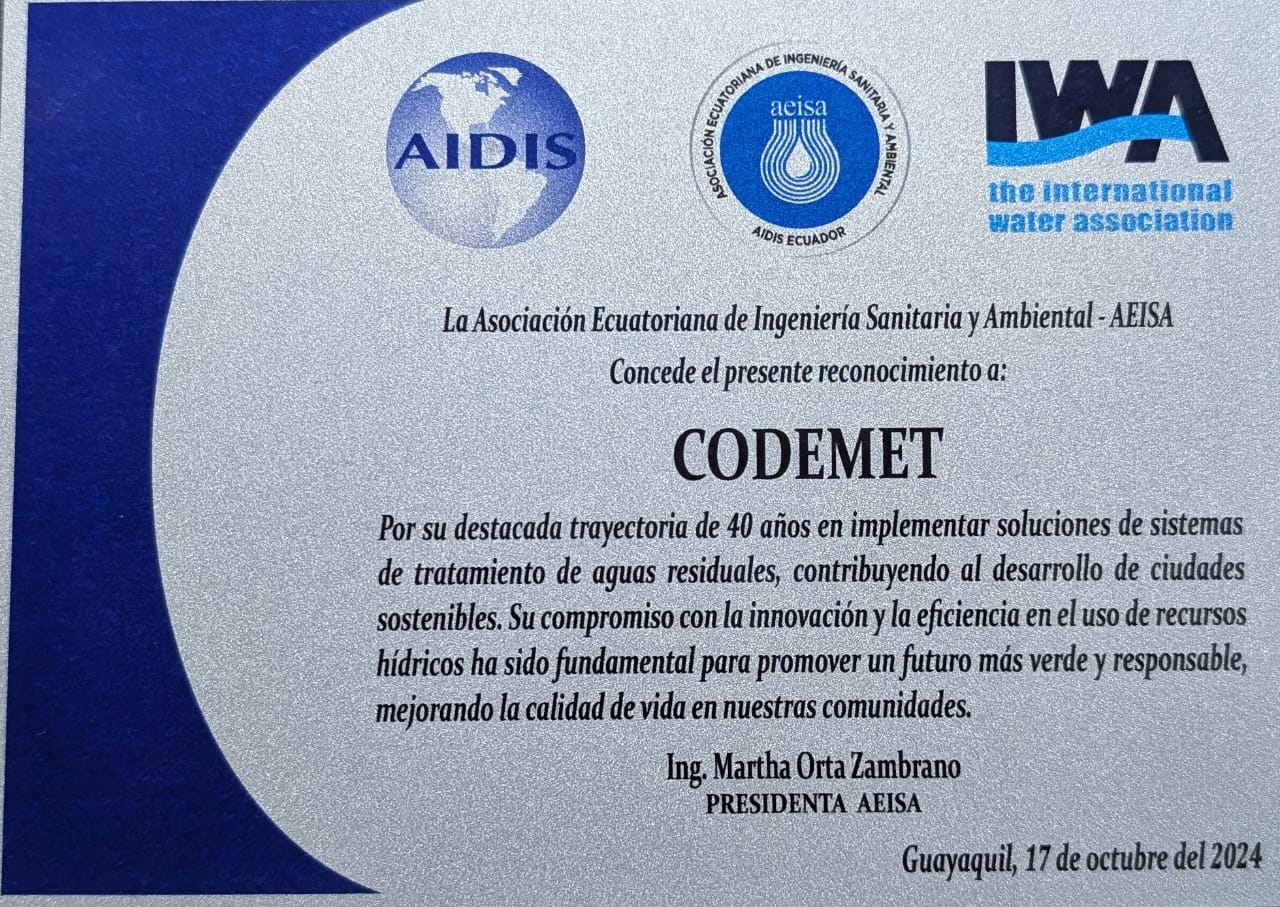 Por su destacada trayectoria de 40 años implementando soluciones de sistemas de tratamiento de aguas residuales, contribuyendo al desarrollo de ciudades sostenibles.